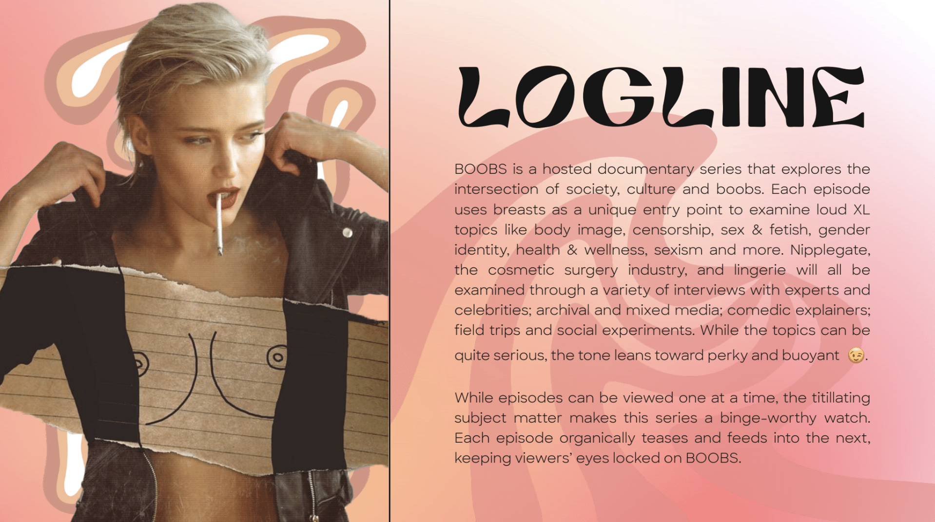 Yes, it’s quite the title. BOOBS is a hosted docuseries that explores the intersection of society, culture and well...Boobs! From sex and gender to health and wellness, BOOBS explores the hidden mechanisms and systems that shape our perceptions of women.